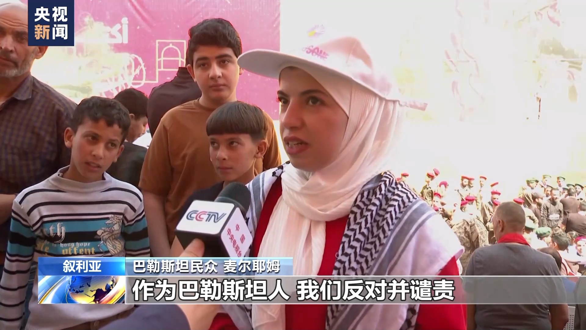 巴勒斯坦民众 麦尔耶姆:作为巴勒斯坦人,我们反对并谴责以色列方面对我们领土的侵占,我们反对针对加沙民众的暴力行为。对伊朗驻叙利亚使馆建筑的袭击是对叙利亚领土的野蛮侵犯,同对加沙地带的侵犯如出一辙。