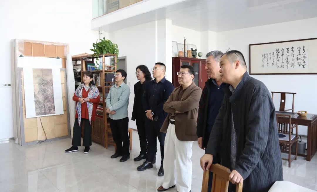 山东师范大学美术学院一行在山东画院画家陪同下参观展览。