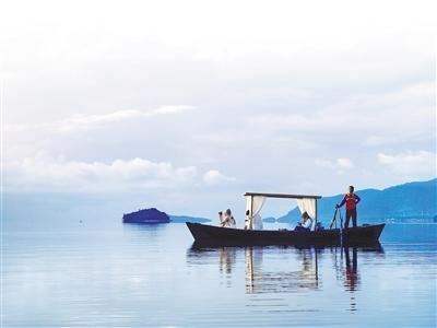 中国游客在泰国南部甲米府兰塔岛近海搭乘小船拍摄日出。本报记者 张矜若摄