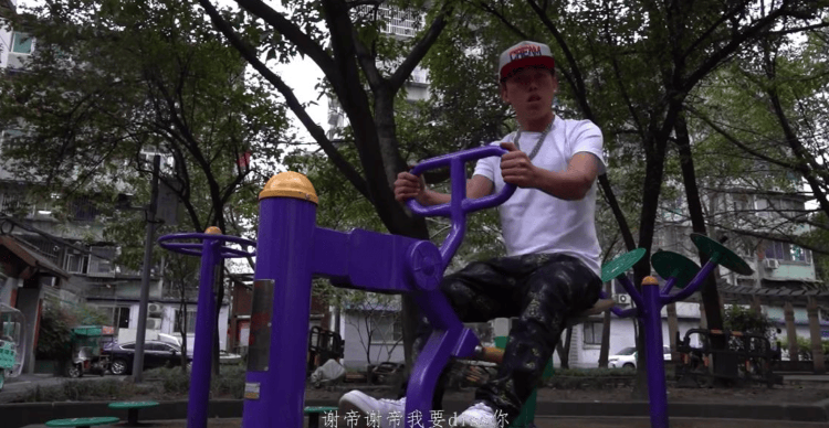 这些梗源于说唱歌手诺米的歌曲《谢天谢帝》。歌词中“谢帝谢帝我要Diss你”的发音和“我要迪士尼”相似,加上诺米的MV将取景地放在成都玉林七巷和八巷之间,一居民区楼下的健骑机所在地,显得十分接地气。