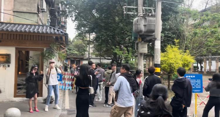 4月8日11时25分许,人流慢慢增加,除了前来打卡的外地人,数位成都嬢嬢、带着小孩的成都女生、身着粉衣的成都本地搞笑博主都前来打卡。
