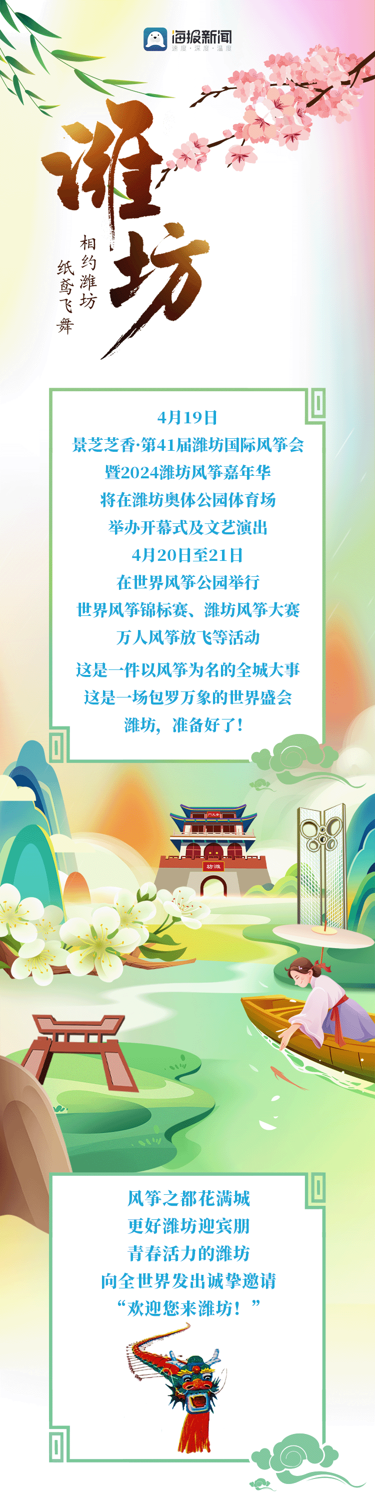 潍坊向全世界发出诚挚邀请欢迎您来到潍坊共赴风筝之约热情好客的潍坊人请将这篇微信传递到每个角落让更多人看到我们的家乡2024,我在潍坊等您