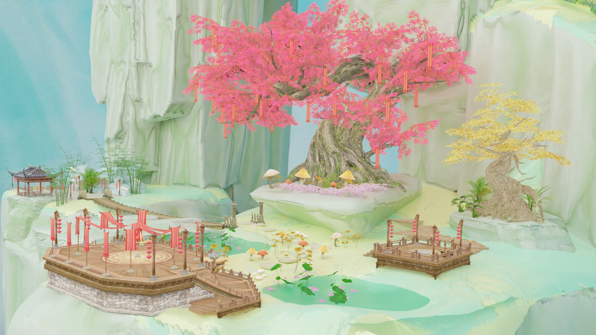 鹊桥座·壹点动心数字交友空间采用3D建模、云计算、大数据等先进技术,搭建多维空间和互动平台,包含倾心荷塘、许愿树、眺望台、桃花岛、古风长廊、嘉宾展示区、互动区、娱乐区等众多元素,依托千佛山相亲大会海量嘉宾资源,通过数字化手段对千佛山相亲大会场景进行生动复刻和艺术呈现,打破虚实次元边界,展现科技创新与相亲社交的虚实融合,进一步丰富提升广大单身男女的相亲交友的互动感官体验。