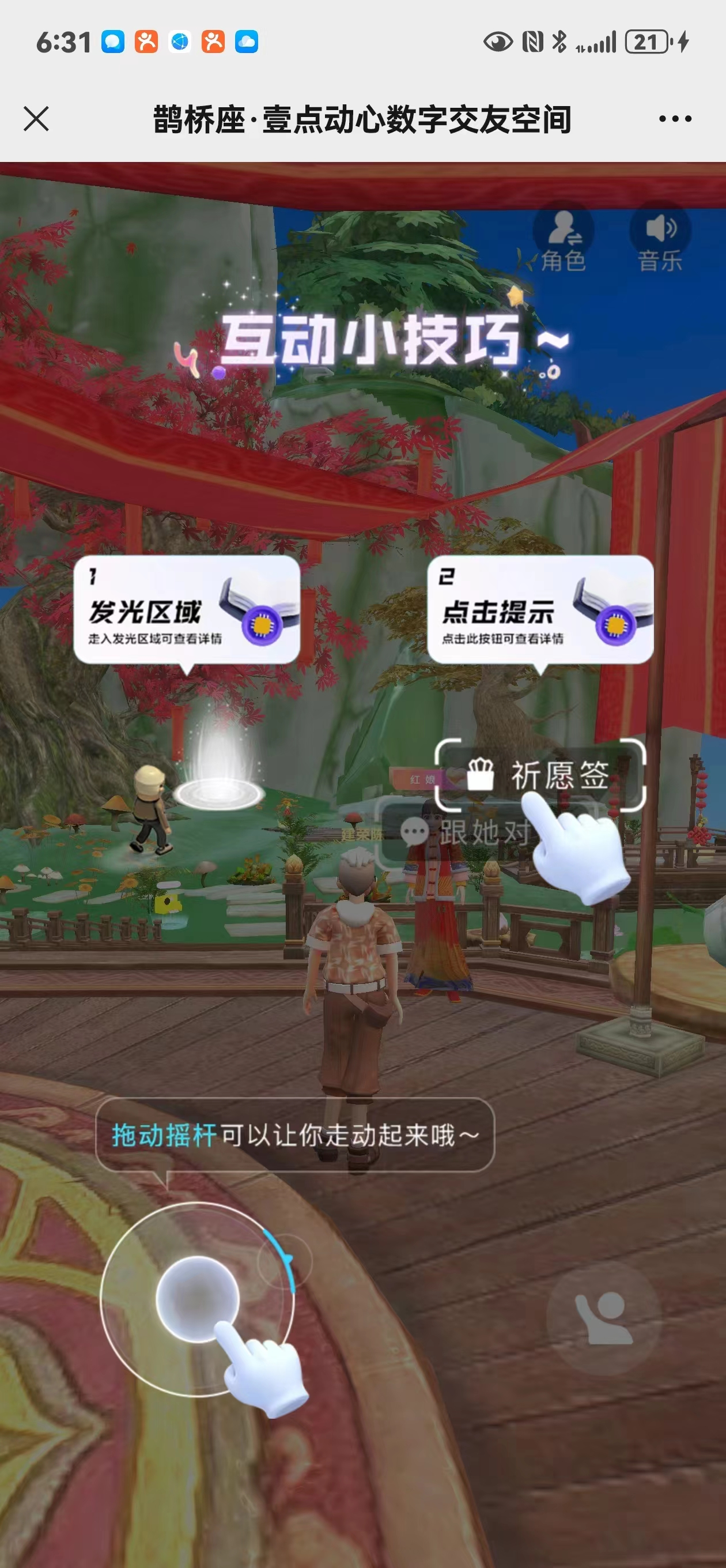 此外,空间“许愿树”和“眺望台”分别设置有“祈愿签”,点击空间内的“祈愿签”触发点,即可生成你的专属祈愿签。保存手机分享亲朋好友,邀请大家一起来试试手气吧!