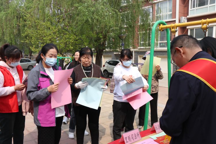 上午 9:30,活动在宏泰家苑和教师之家小区如火如荼展开。各参与单位巧妙运用多种形式,将法律知识广泛传播给居民。他们精心悬挂宣传横幅,巧妙设置普法展板,还贴心地发放了《民法典》《行政复议法》《未成年人保护法》等丰富多彩的法律宣传资料。