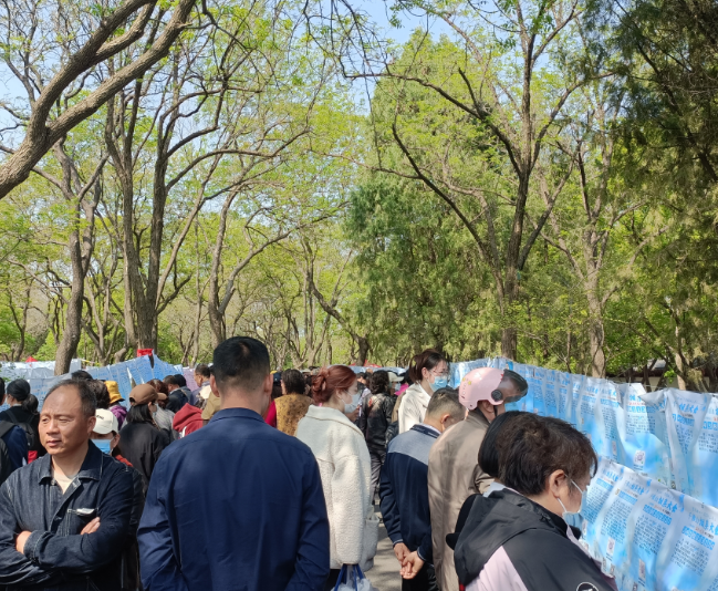 4月12日,第18届三月三千佛山相亲大会在济南千佛山风景区东门内广场火热进行中,无数单身男女来到相亲会现场,找寻自己的有缘人。