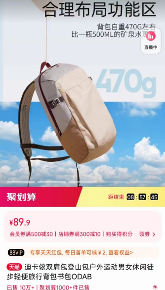 “两年前花了近49元购买的迪卡侬背包,现在价格已经涨到快90元了。”在小红书平台上,消费者付女士惊讶地分享了“升值”背包的购买截图。