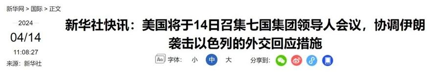 美国总统拜登13日发表声明说,美国将于14日召集七国集团领导人会议,协调伊朗袭击以色列的外交回应措施。