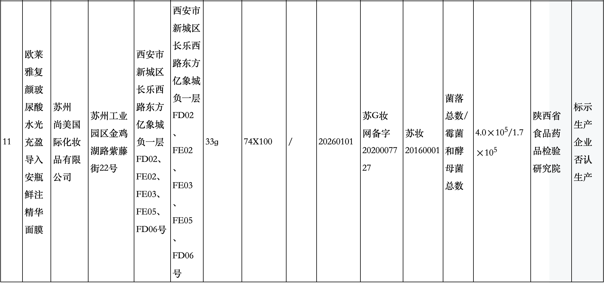 据悉,被抽检的欧莱雅安瓶面膜涉事产品由苏州尚美国际化妆品有限公司(简称“苏州尚美”)生产。但据此前媒体报道,对于该批次产品,苏州尚美国际化妆品有限公司否认生产。