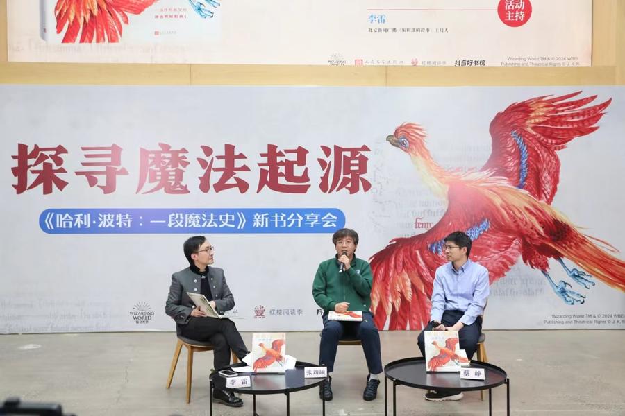4月13日,世界读书日前夕,由人民文学出版社举办的“探寻魔法起源——《哈利·波特:一段魔法史》新书发布会”在红楼公共藏书楼举办,人民文学出版社总经理吴良柱莅临现场,中国科学院动物研究所国家动物博物馆馆长张劲硕,清华大学天文系副主任、副教授蔡峥,“哈利·波特”系列主要译者马爱农,原责任编辑王瑞琴,“哈利·波特”工作室负责人翟灿,《哈利·波特:一段魔法史》译者向寻、冬翌,一起踏上了一场探索之旅,领略了现实与幻想交织而成的“魔法”的魅力。活动由北京新闻广播《编辑部的故事》主持人李雷主持。
