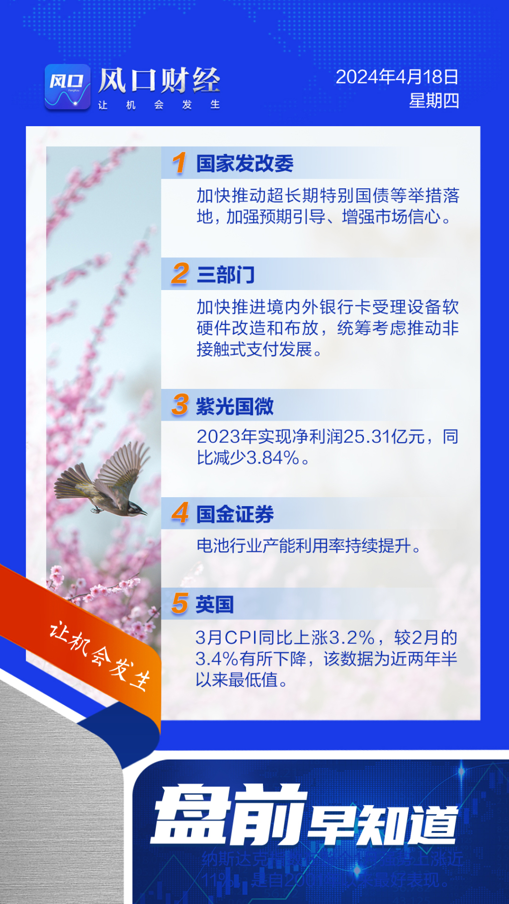 A股盘前:国家发改委将加快推动超长期特别国债等举措落地;三部门统筹考虑推动非接触式支付发展