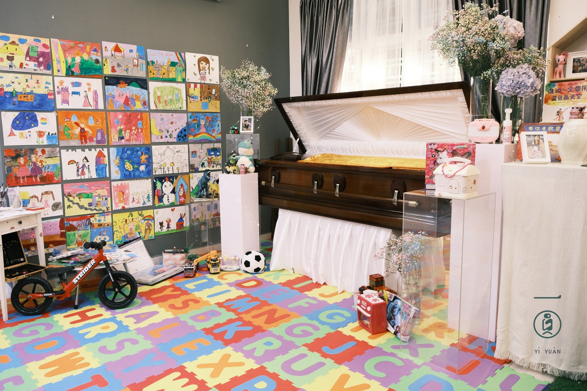 这是一场特殊的葬礼。在由可爱小熊与绘本建造的童话世界里,处处都是4岁女孩小艾生活过的证据。假使抚摸一下,可能还留有一个女孩留恋人世的余温。