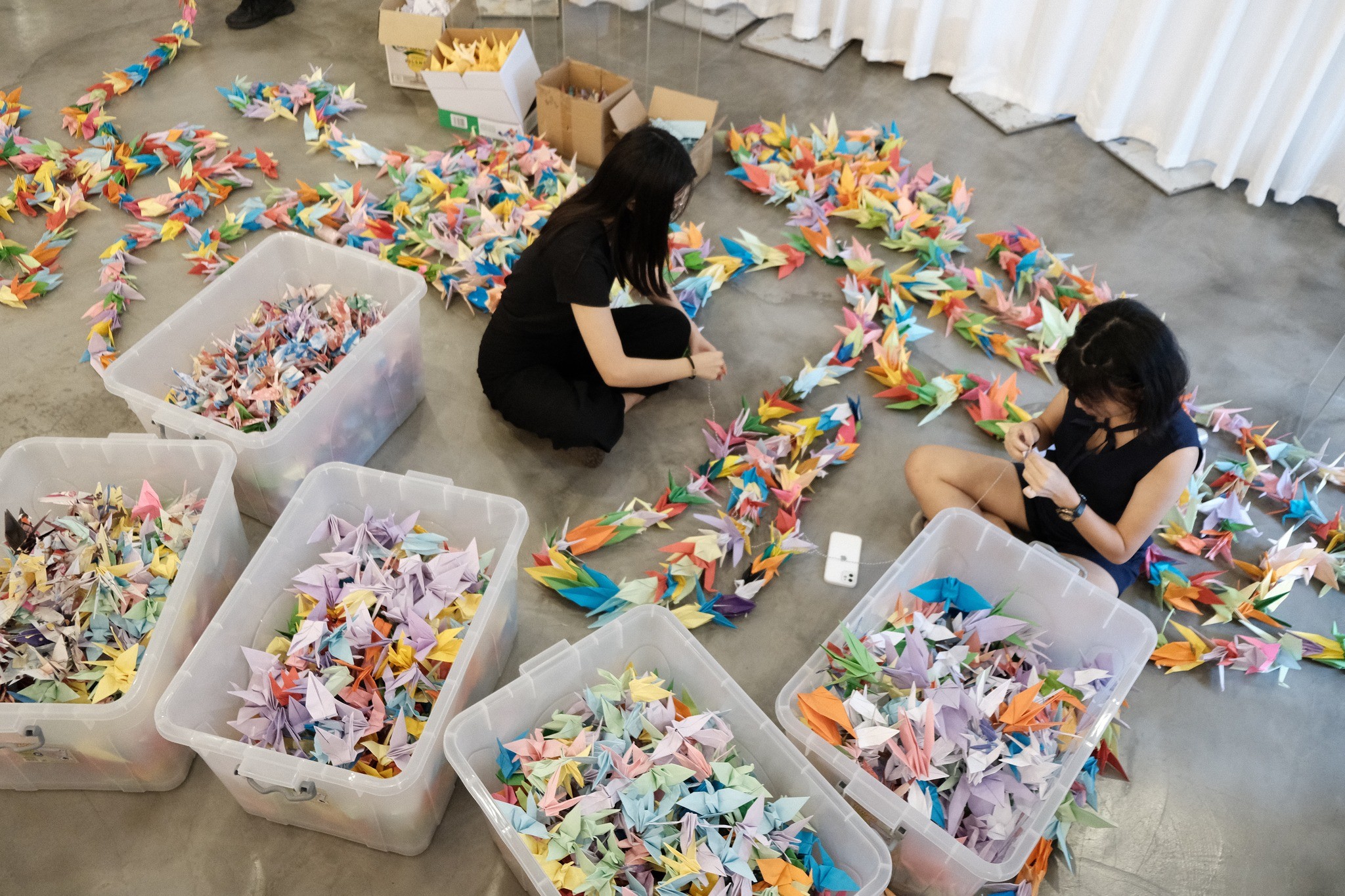 一起折下千纸鹤。(受访者供图)