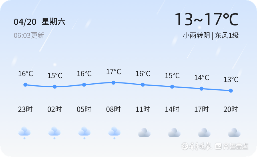 威海市今日(2024年4月20日)天气小雨转阴,气温在13℃至17℃之间波动,空气质量良好,PM2.5浓度为70微克/立方米,属于良好水平。受小雨影响,路面湿滑,市民出行请注意交通安全,建议携带雨具,适当增添衣物以防感冒。