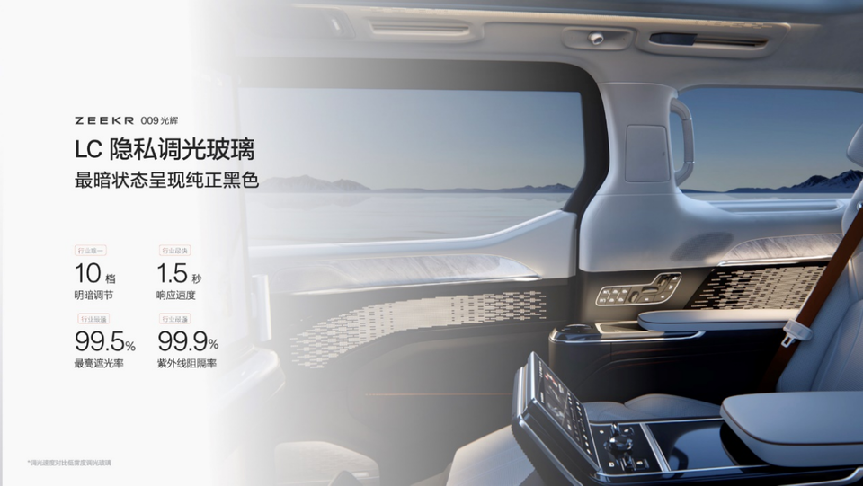 极氪009光辉全球首发搭载行业最先进的LC隐私调光玻璃