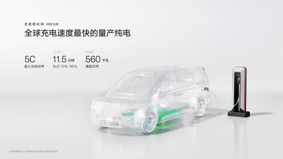 极氪009光辉在全球量产纯电车型中充电速度最快