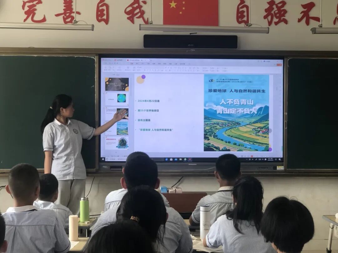 为了提高同学们的环保意识,遥墙中学举办了地球日科普系列活动。首先在每周班会课上开展“世界地球日”主题班会,动员同学们积极践行绿色低碳生活。其次在班会课后鼓励同学们创作保护地球珍爱环境手抄报比赛,选取优秀作品在宣传栏进行展示。