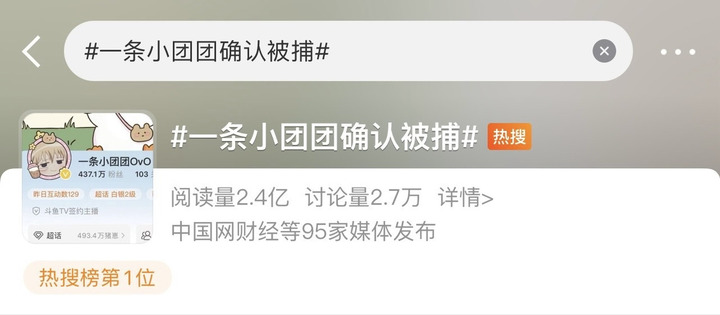今天上午,斗鱼知名主播#一条小团团确认被捕#的消息登上热搜。