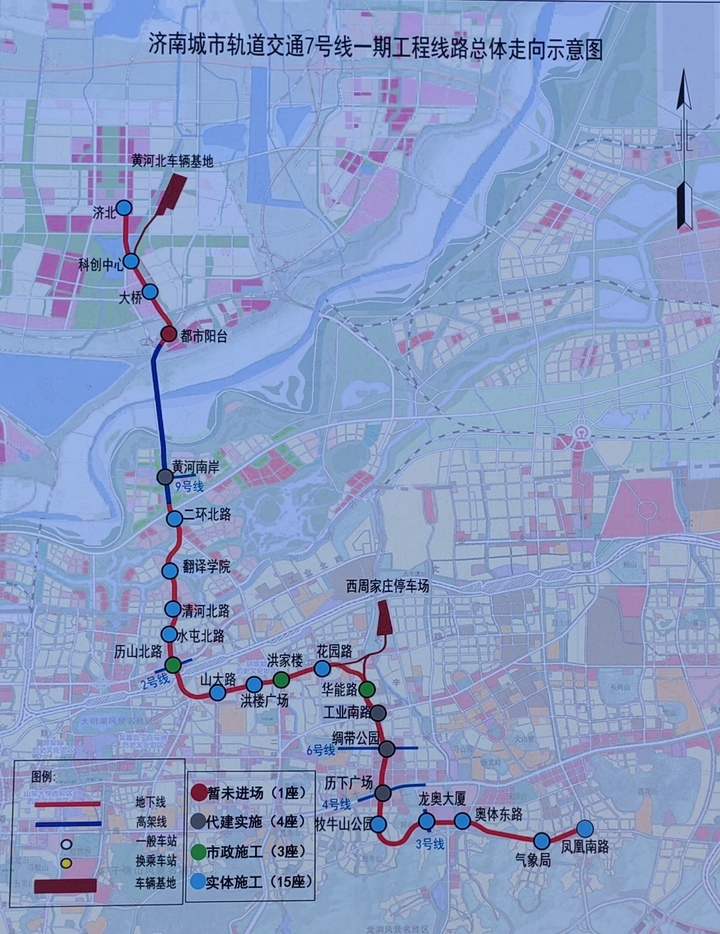 7号线一期工程全长约30公里,是全国第二条、山东首条穿越黄河的地铁线路。