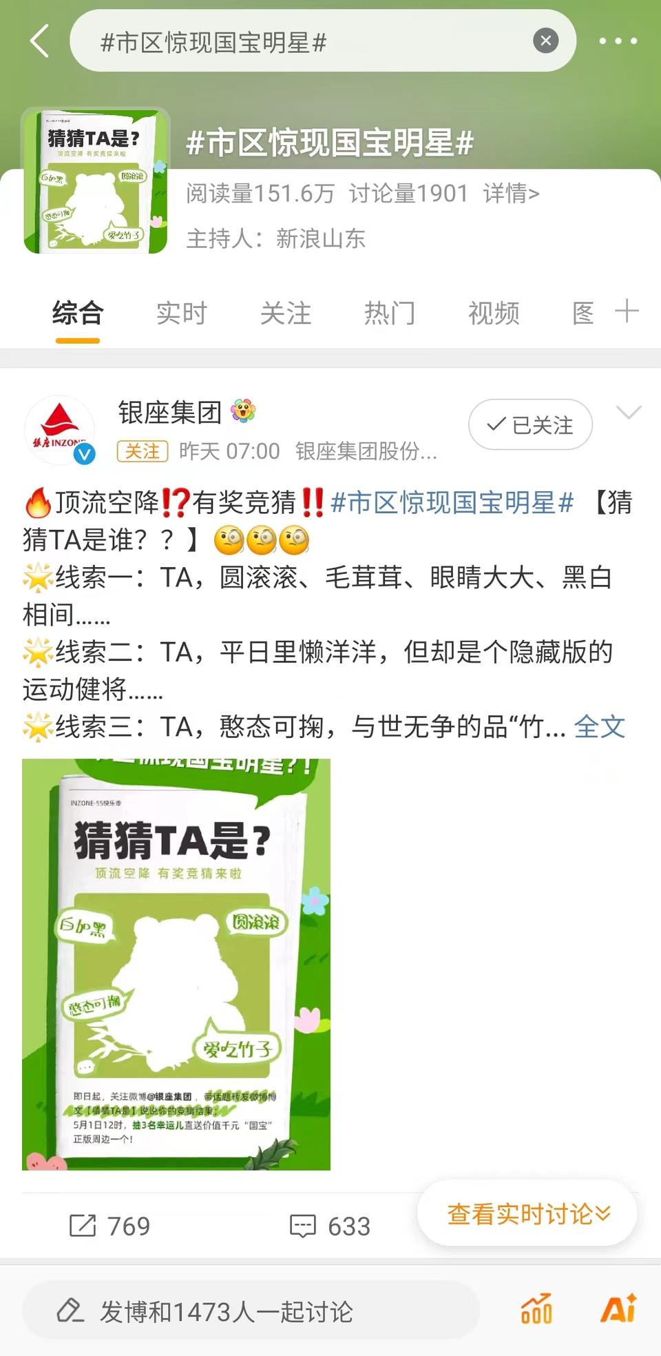 4月25日#市区惊现国宝明星#话题冲上热搜,顶流空降银座引发全网讨论!微博热度霸榜第三,截至4月25日12时02分参与互动量已达151万!