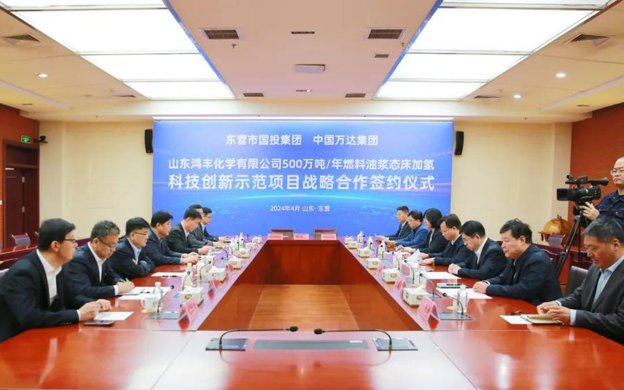 仪式上,中国万达集团与东营市国投集团进行万达集团鸿丰化学科技创新示范项目战略合作签约。