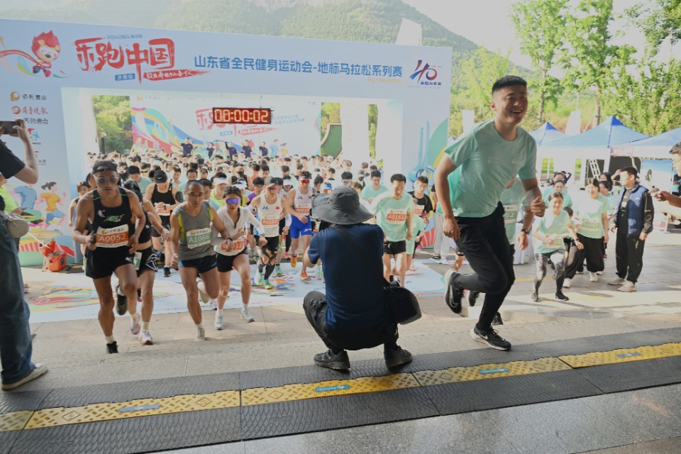 (记者 张中 济南报道)4月27日,“乐跑中国 绿动齐鲁”2024山东省全民健身运动会·地标马拉松系列赛在济南千佛山举行,跑友们在龙门处集结,摩拳擦掌做好准备,随着一声枪响,纵身开跑!