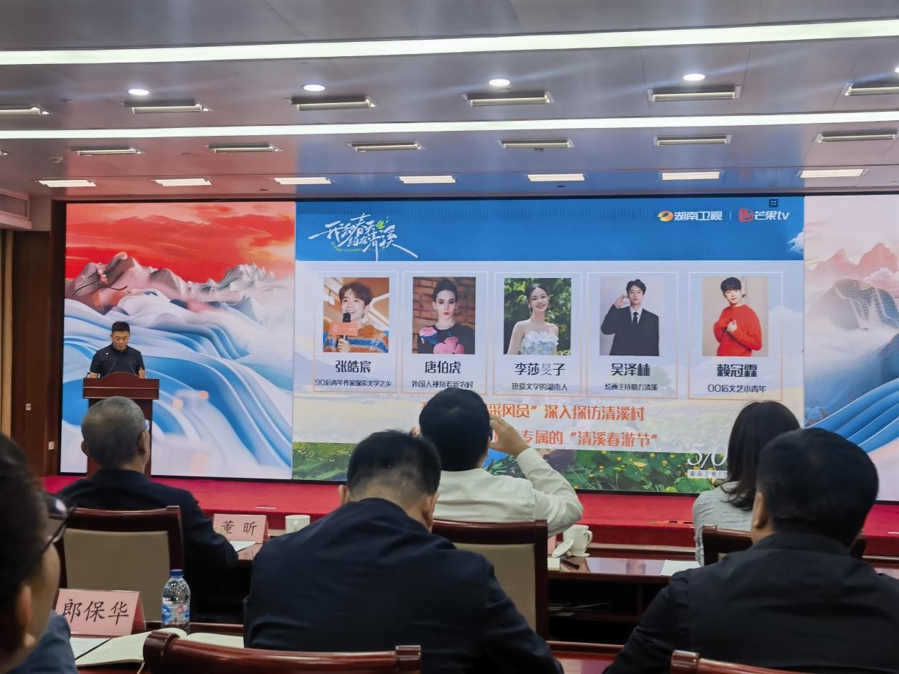 在活动现场,湖南卫视节目中心主任许可发言,推荐湖南卫视、芒果TV双平台正在筹备的三档全新节目《我和春天约在清溪》《花儿绽放·乡村季》《旅行任意门》,并介绍了双平台助力大文旅的坚守与探索。在内容创新助力文旅发展的蓝图上,湖南广电正用青春笔墨,勾勒出盛世丽景的新篇章。