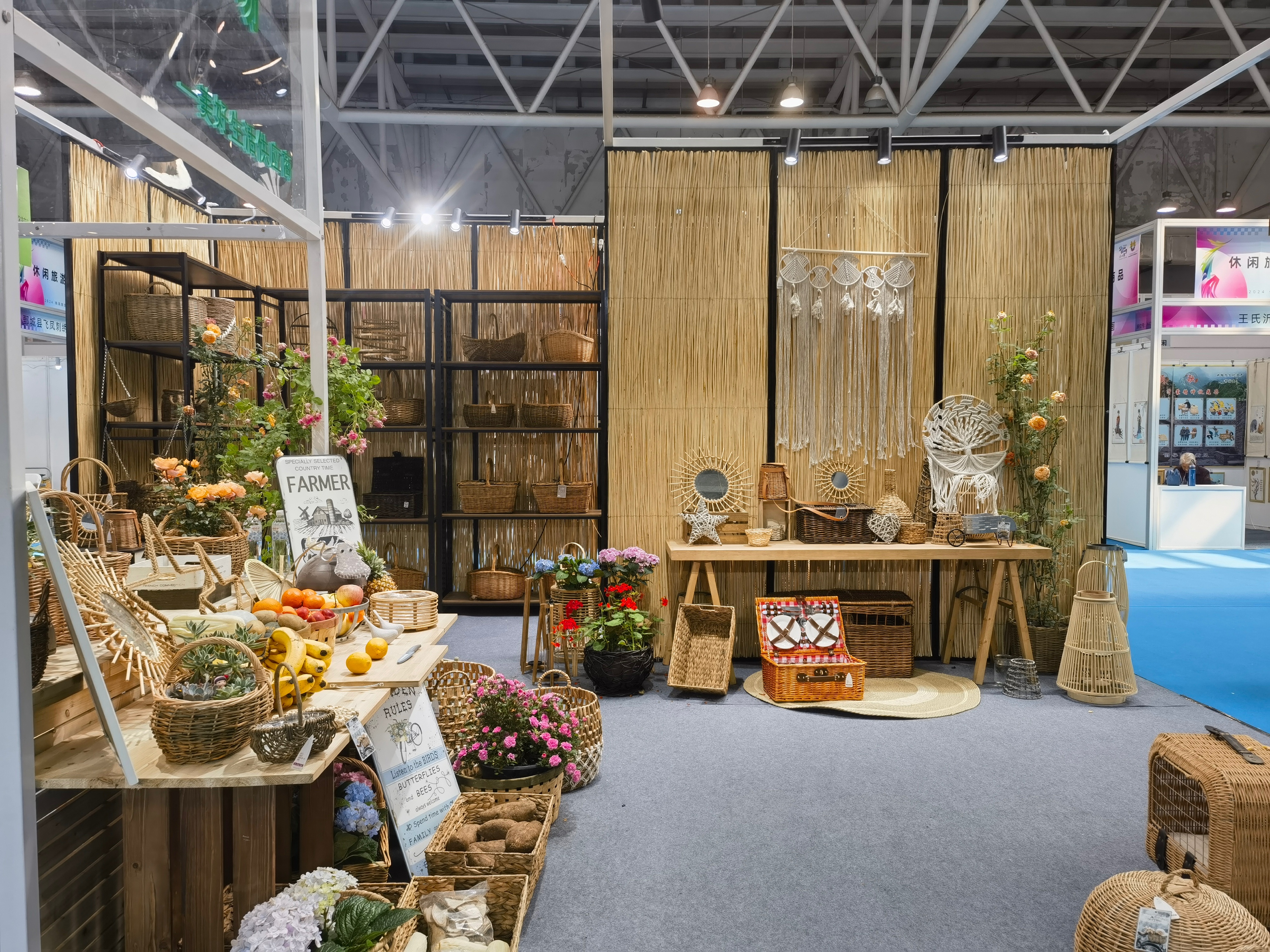 走进临沂临沭欧拉农场的展位,仿佛来到了农场,入目是一个个柳编花篮、野餐篮、果篮,自然清新。“农场今年一月正式运营,主要做亲子游、研学游。”展会上,欧拉农场合伙人葛华告诉记者,欧拉农业综合开发公司已经做了36年柳编,开发柳编产品样式3000余种,远销欧美日韩等国家和地区,并入选国家级非物质文化遗产。近两年来,欧拉开始开拓国内市场。“我们的柳编野餐篮现在是热销产品,通过直播就能直接订购到家。”
