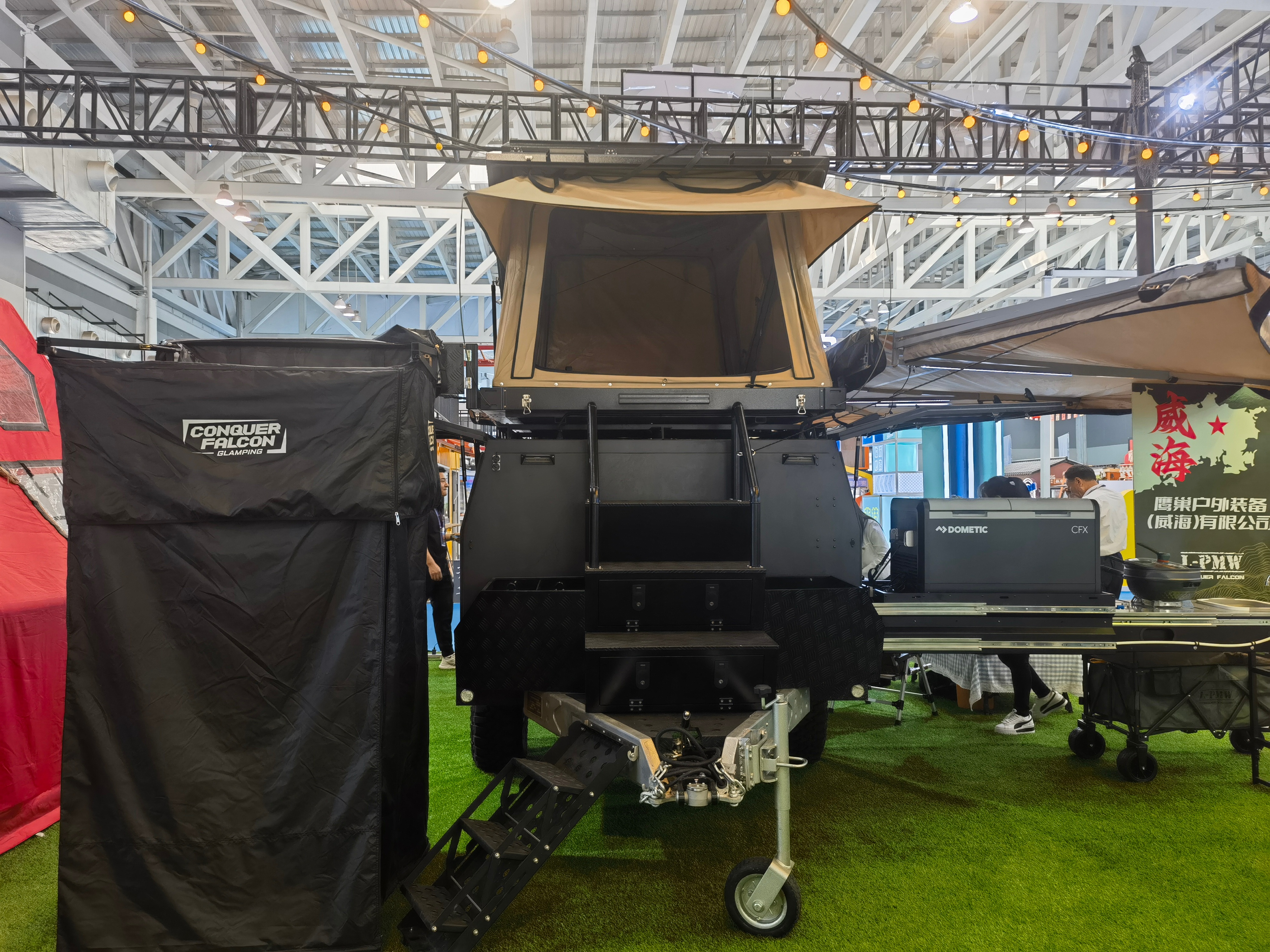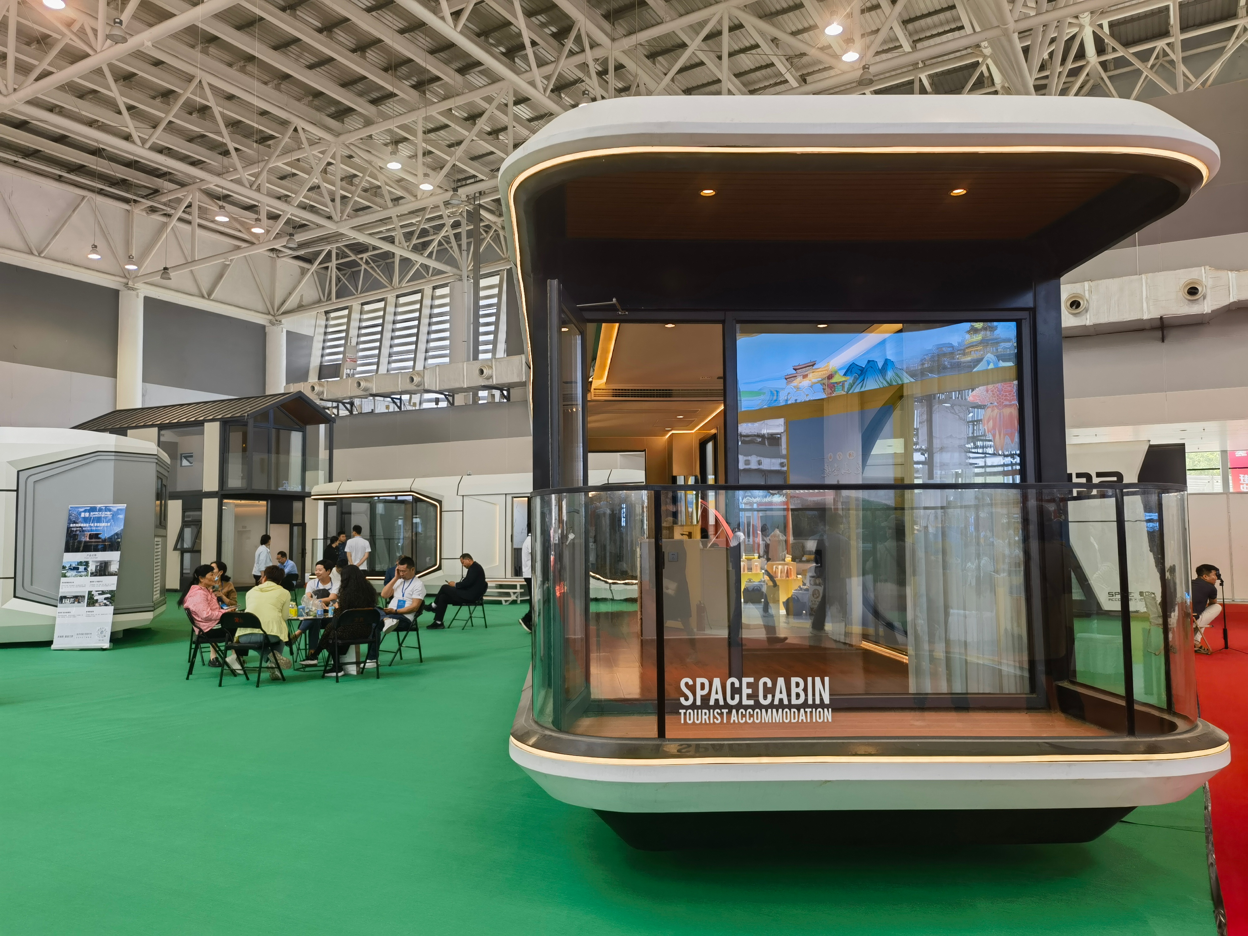 郊外、乡村等更贴近大自然山水的旅游地经常成为人们休闲游的目的地。展会上单独设置了趣野趣玩趣露营的旅游场景,众多企业展示了房车、拖车、民宿等户外休闲游产品。威海一家专营户外装备的企业带来了一款攀爬者拖车。工作人员告诉记者,这款车配备遮阳篷、淋浴间、厨房,可以做饭、洗澡、休息,轻便小巧、性价比高。展会上,浪潮带来了其智慧房车营地,房车配备全屋智能系统,可一键控制灯光、电器等设施,带来更好的露营体验。来自山东潍坊的一家文旅企业带来了其太空舱系列民宿样品。一个个造型靓丽,四面墙壁以大片透明玻璃代替的太空舱民宿,麻雀虽小五脏俱全,配备空调、热水器、马桶、淋浴等设施,自带露天阳台,入住后可360度遍览周边美景。目前这款太空舱民宿已在海边、山地的一些露营地应用。