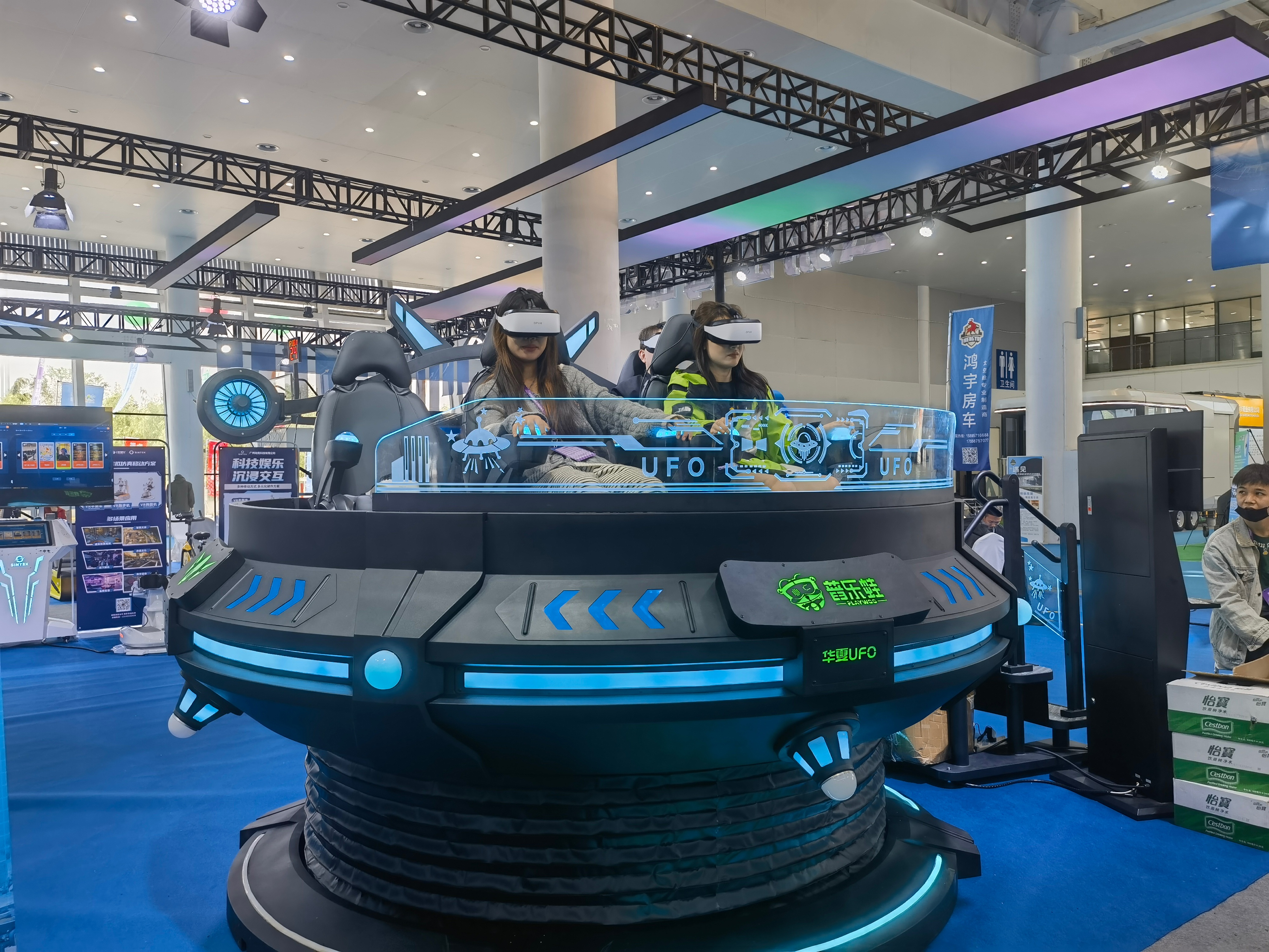 展会上,一辆酷炫的飞碟状VR娱乐设备吸引了不少人前去体验。戴上VR眼镜,坐上“飞碟”,就能来一场逼真的VR体验。“我们之前与当地科学中心合作,用VR展现整个航空航天的发展史。从文旅、科普的角度来说,对VR这方面是有需求的。”广州一家虚拟现实企业工作人员告诉记者,他们的VR产品主要应用于商场、公园、景区、科技馆等场所。
