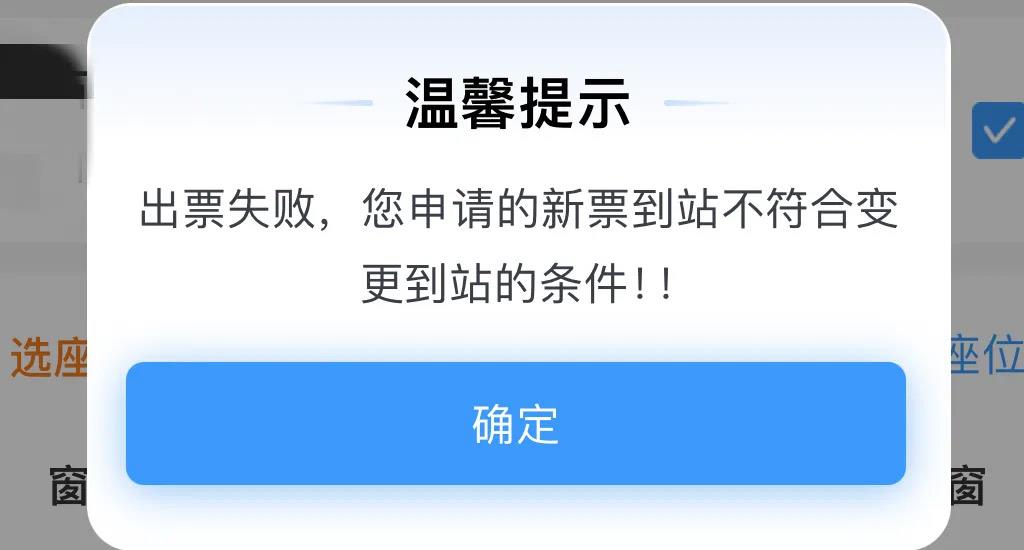 举例:绵阳—成都西的车票可以直接改签为绵阳—成都东,如您选择变更到站,系统会有以下提示。