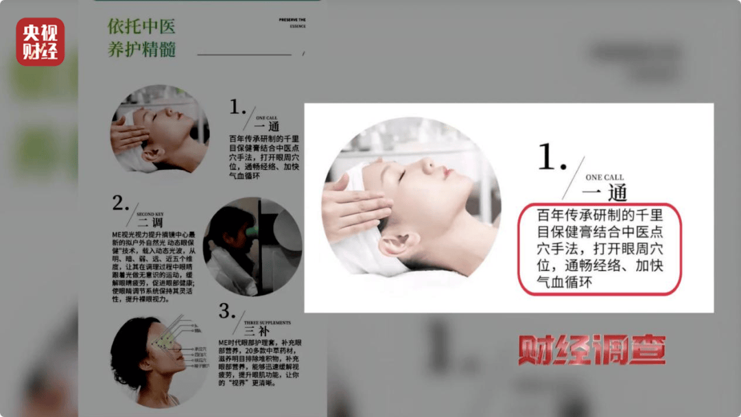 记者发现,有一家专做视力提升生意的连锁机构对外声称他们可以让孩子们不打针、不吃药、不手术,仅仅用他们研制的“神药”“神奇的仪器”进行眼部按摩、涂抹、雾化,就能帮助孩子提升视力、轻松摘掉眼镜。