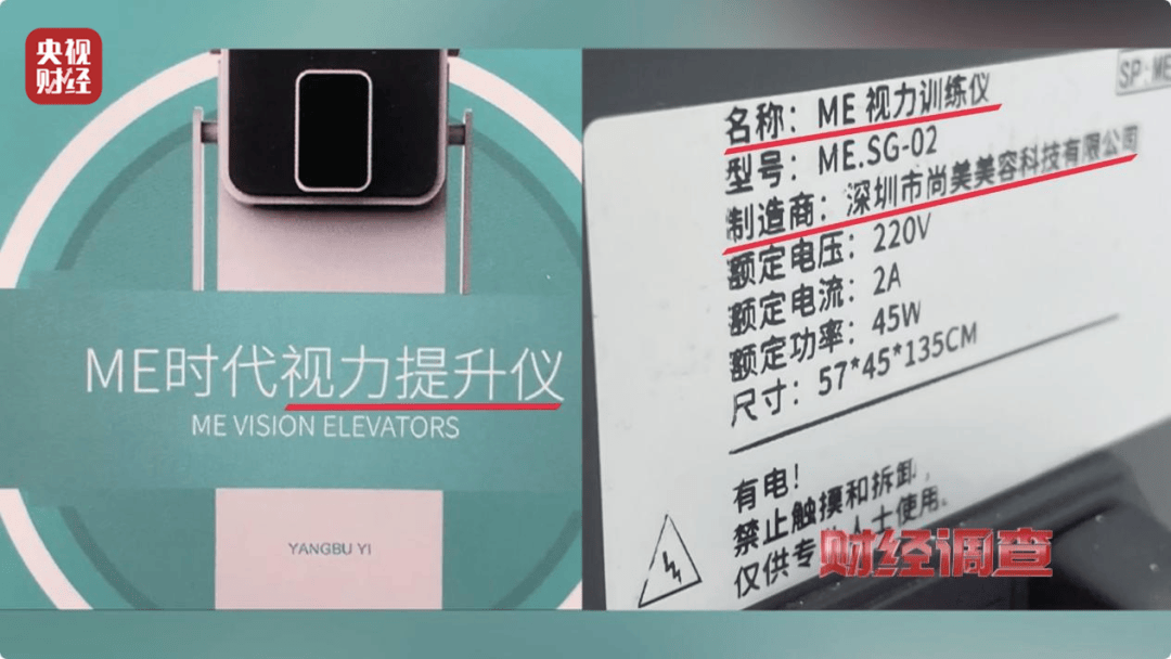 事实上,这台ME视力训练仪的制造商为深圳市尚美美容科技有限公司,批准生产的资质是生活美容仪器,与医疗器械毫无关联。检测报告上标明的委托检测项目,仅仅只是产品是否具有蓝光危害,而能否具备提升视力的功效,检测报告并没有提及。