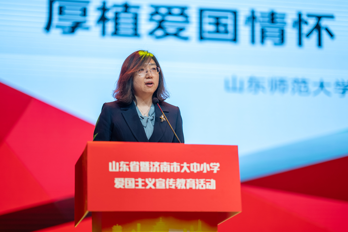 上课铃声响起,思政教师连晓芹走上礼堂讲台。历下区青龙街小学诗朗诵《英雄》、济南艺术学校红色剧目《红瓦》、山东青年政治学院舞蹈《黄河入海》等别具特色的节目接连上演,引起现场师生强烈共鸣,让大家收获了更鲜活深刻的爱国主义教育。活动现场还表彰了40个“济南市校园爱国主义教育优秀案例”,山东师范大学、历城二中就学校爱国主义教育作经验分享。