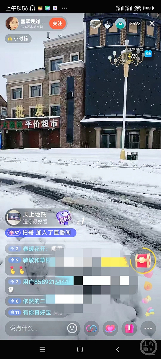 28日早晨,河北塞罕坝林场出现降雪,地上积雪明显(图片来源于当地网友)29日清晨,河北塞罕坝的刘女士在网络上开启了直播。在当天上午9点的直播中,能看到塞罕坝当地的屋顶、街道、路灯上都有积雪,天上还飘着小雪,不过上午10点半左右,雪就停了。刘女士结束直播后接受采访时表示:“雪是27日晚上8点开始下的,我看雪挺大的就拍了视频,没想到一下火了。”