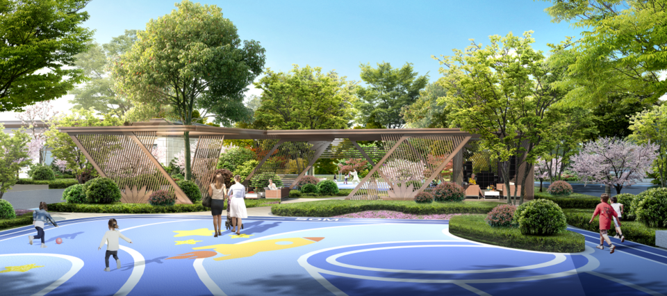 中央景观及廊架效果图