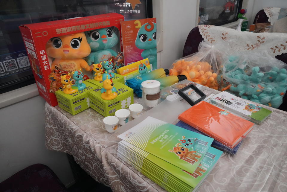 青岛至东营首发列车上,东营市文化和旅游局、东营市交通运输局、山东中铁文旅集团联合举办“沿着黄河遇见海”文旅推广活动,黄河文化、孙子文化、石油文化等东营文旅元素搬上列车,城市吉祥物“河东东”“海营营”现场推介特色文创产品,并送上城市伴手礼,欢迎旅客走进东营享受慢旅生活,得到旅客纷纷点赞。