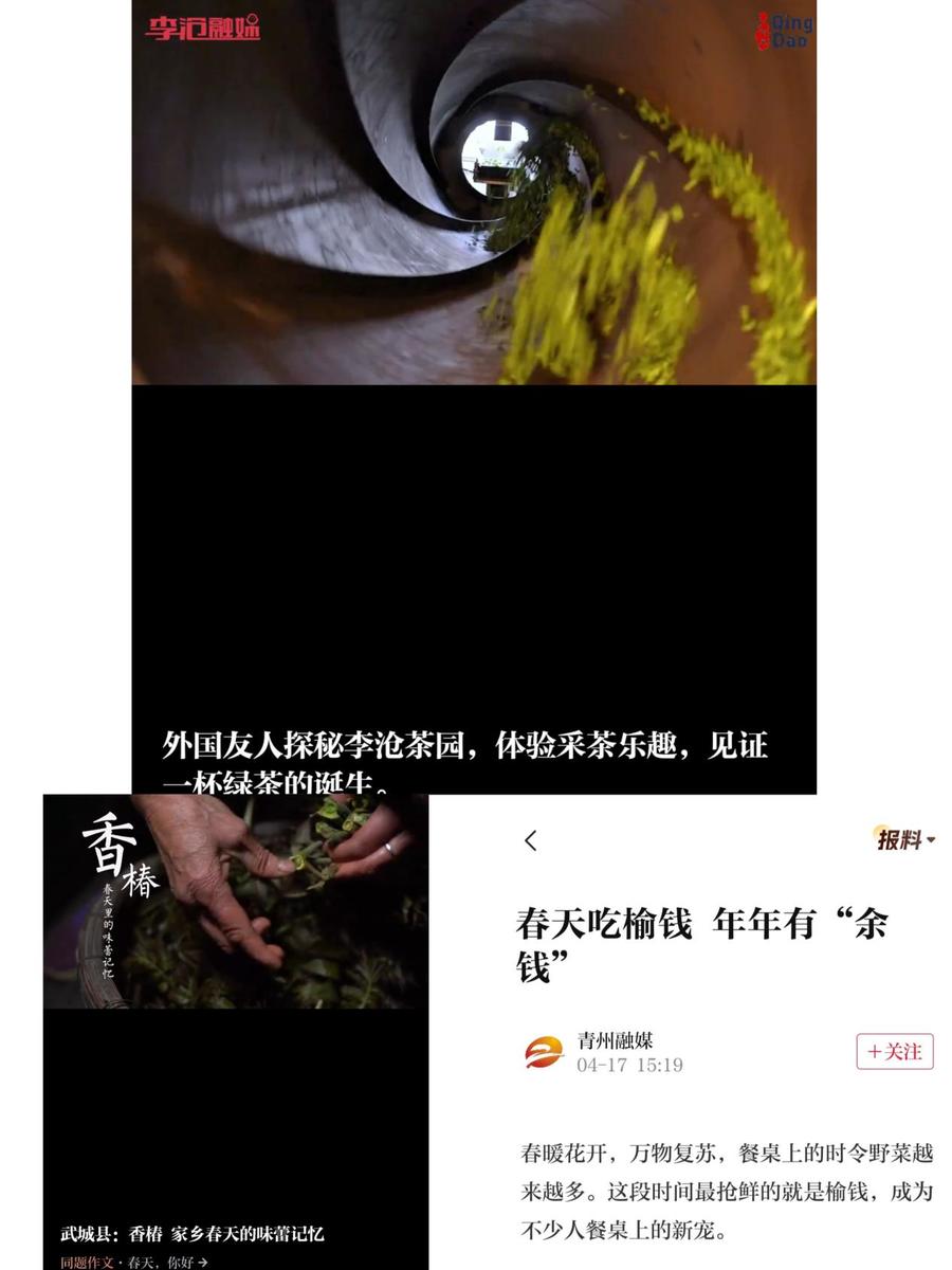 许多大众号号主发布与春天美食相关的同题作文(图源“李沧融媒”“爱武城”“青州融媒”大众号)