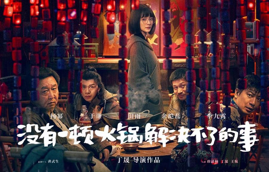 今年五一档几部新片中,唯一一部结合了悬疑犯罪和喜剧类型的电影也拥有着最长的名字——《没有一顿火锅解决不了的事》。影片讲述了一个充满悬疑和喜感的荒诞故事:四个互不相识的人在戏院后台库房分赃,竟意外牵扯进一桩命案,一顿热辣滚烫的火锅翻滚着层出不穷的悬疑。
