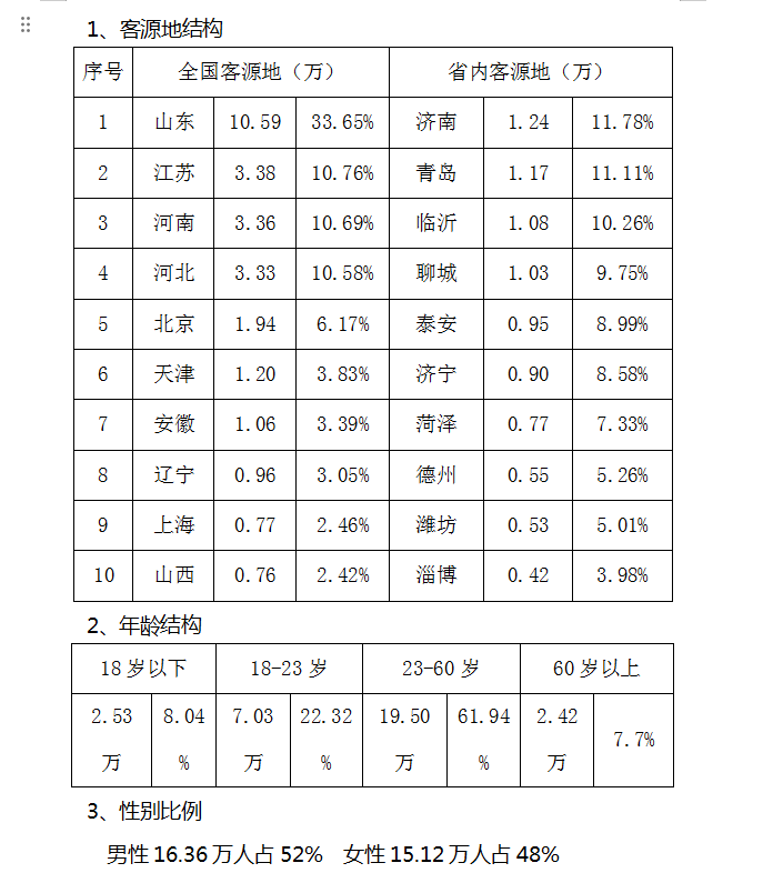 2024年“五一”假日,泰山累计接待进山游客31.48万人,同比增长3.99%。基于美团网客源地,根据游客常住地数据分析。