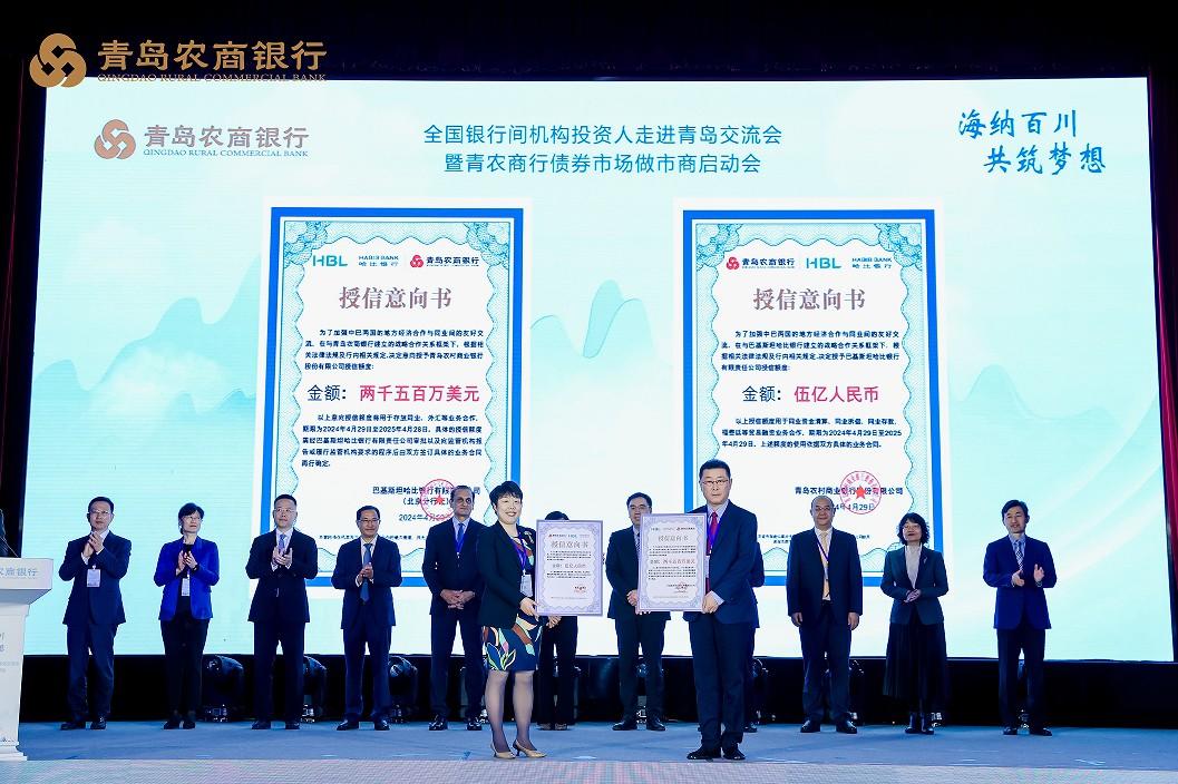 4月29日,在全国银行间机构投资人走进青岛交流会暨青农商行债券做市场启动会上,青岛农商银行与巴基斯坦哈比银行举行了互为授信签约仪式。