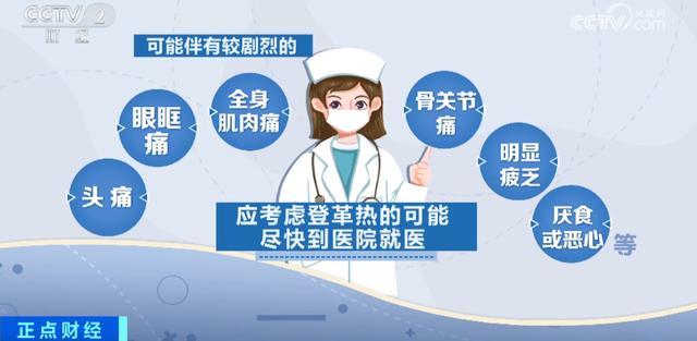 中国卫生有害生物防制协会会长 梁晓峰:主要症状是发热,所以一旦有不明原因的发热或者被蚊虫叮咬以后,我们要意识到有可能是登革热,一旦有这样的疾病,要尽早就医,不能扛着。我们要去发热门诊或者当地的医疗机构做一些检查,尽早确诊的话对治疗会很有帮助。