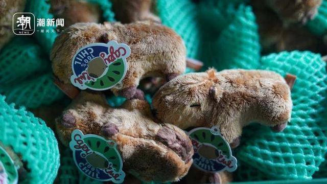 南京市红山森林动物园里的水豚周边玩偶,被摆放成猕猴桃的样子。记者 阮帅 摄
