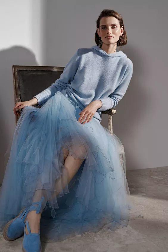 仙气缥缈的雾霾蓝,无论运用在什么单品面料上,都能穿出扑面而来的高级感。