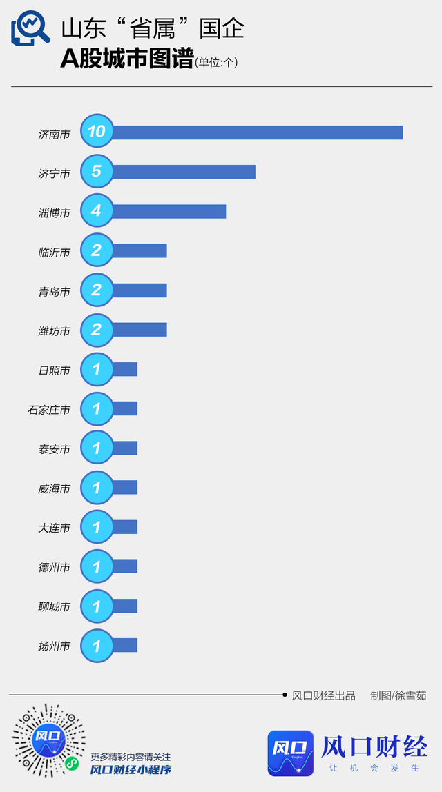 从城市分布看,省属国企A股上市公司主要分布在山东11地市,部分位于外省——