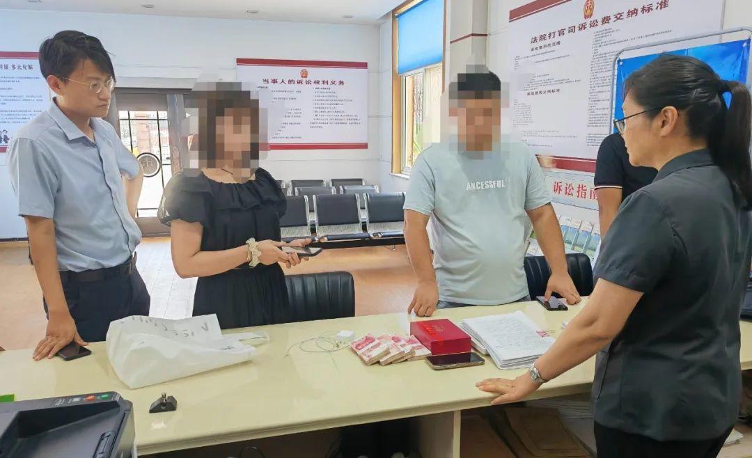 2023年8月,在一起婚约财产返还纠纷中,经调解员调解,小王与小刘达成返还彩礼及部分家具的调解协议。为防止彩礼返还、家具交接过程中双方矛盾激化,进而产生衍生案件,法庭“趁热打铁”,与双方沟通协议履行事宜,当日,在法庭的见证下,小王将案款交到小刘手中,随后,法庭干警协同驻地派出所民警来到小王住处,现场协助、见证双方完成涉案家具的交接,纠纷一次性解决。
