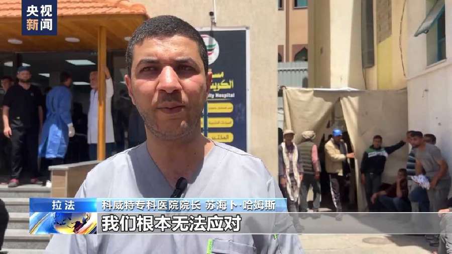 科威特专科医院院长 苏海卜·哈姆斯:由于纳贾尔医院停止运作,我们根本无法应对,如此大量的伤员和重症患者,我们严重缺乏医护人员,现在除了科威特专科医院之外,已没有机构真正负责拉法的医疗服务了,我们向世界上所有人发出呼吁,不要抛下加沙让它独自面对危机,今天最需要的是立即停止冲突,停止巴勒斯坦人的流血伤亡。