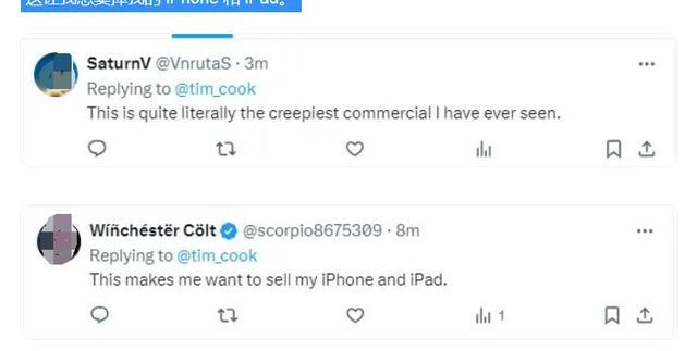 因为反响不好,苹果公司罕见公开道歉,还表示不会按计划在电视上播放。