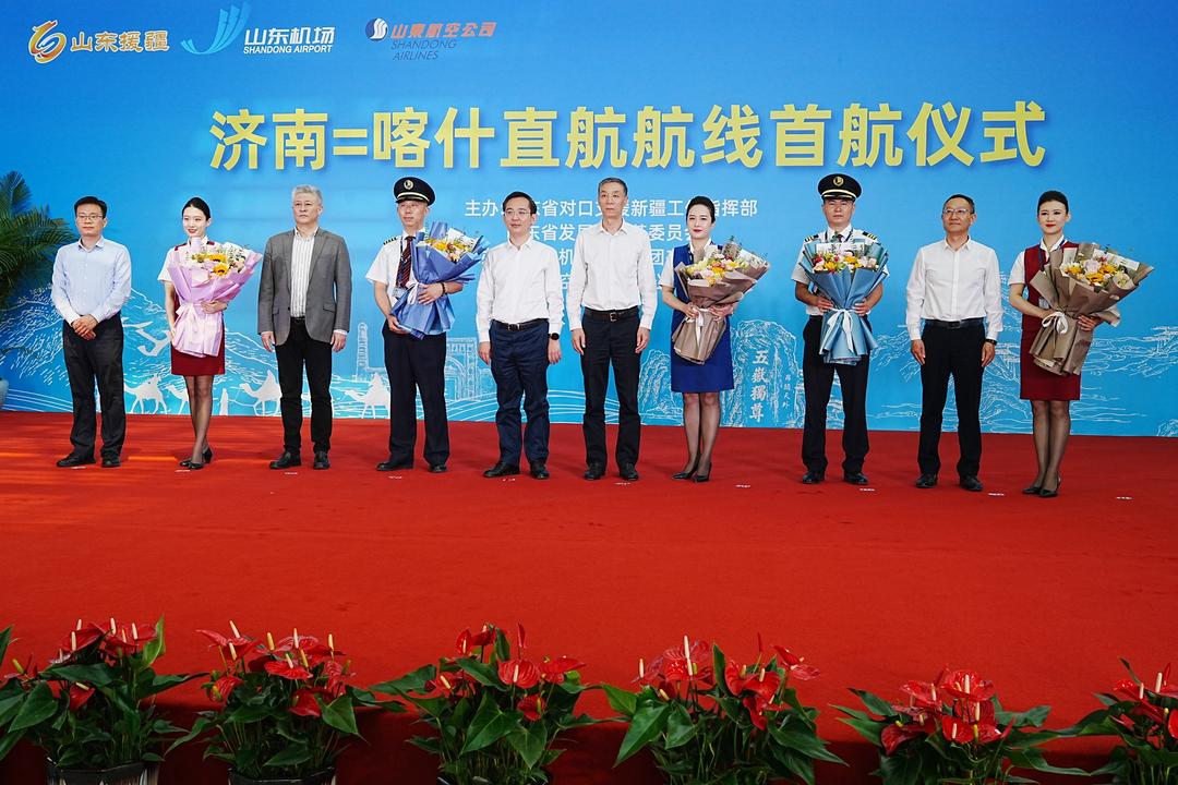 为贯彻国家援疆工作总体部署要求,落实山东省政府援疆工作会议指示精神,山东航空于2010年7月起开通了“济南=乌鲁木齐=喀什”客运航线。截至今年4月30日,该航线共累计执行2,504班次,运输旅客量61.3万人次,为山东与乌鲁木齐、喀什之间的人员往来及经济、文化交流做出了重要贡献。此次“济南-喀什”直飞航线开通后,两地通航时间缩短近2小时,极大促进了两地人民群众人文交流,加大经贸往来,方便两地旅客的出行需求,为两地高品质互联互通架起了一条便捷的空中之路。