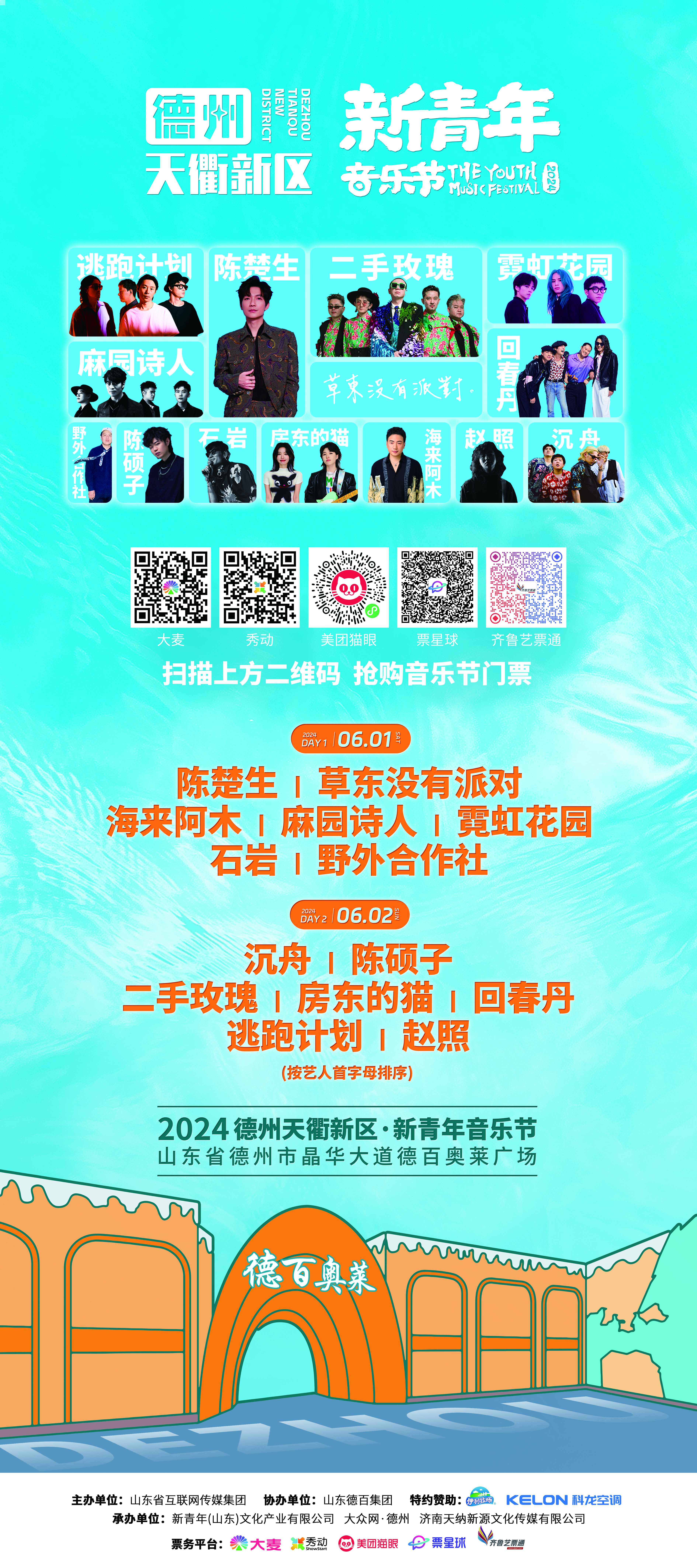 6月1日-2日,草东没有派对、陈楚生、二手玫瑰、逃跑计划、回春丹、麻园诗人、房东的猫 霓虹花园、海来阿木、赵照……14支国内知名歌手、乐队将在德百奥莱广场倾情献唱。